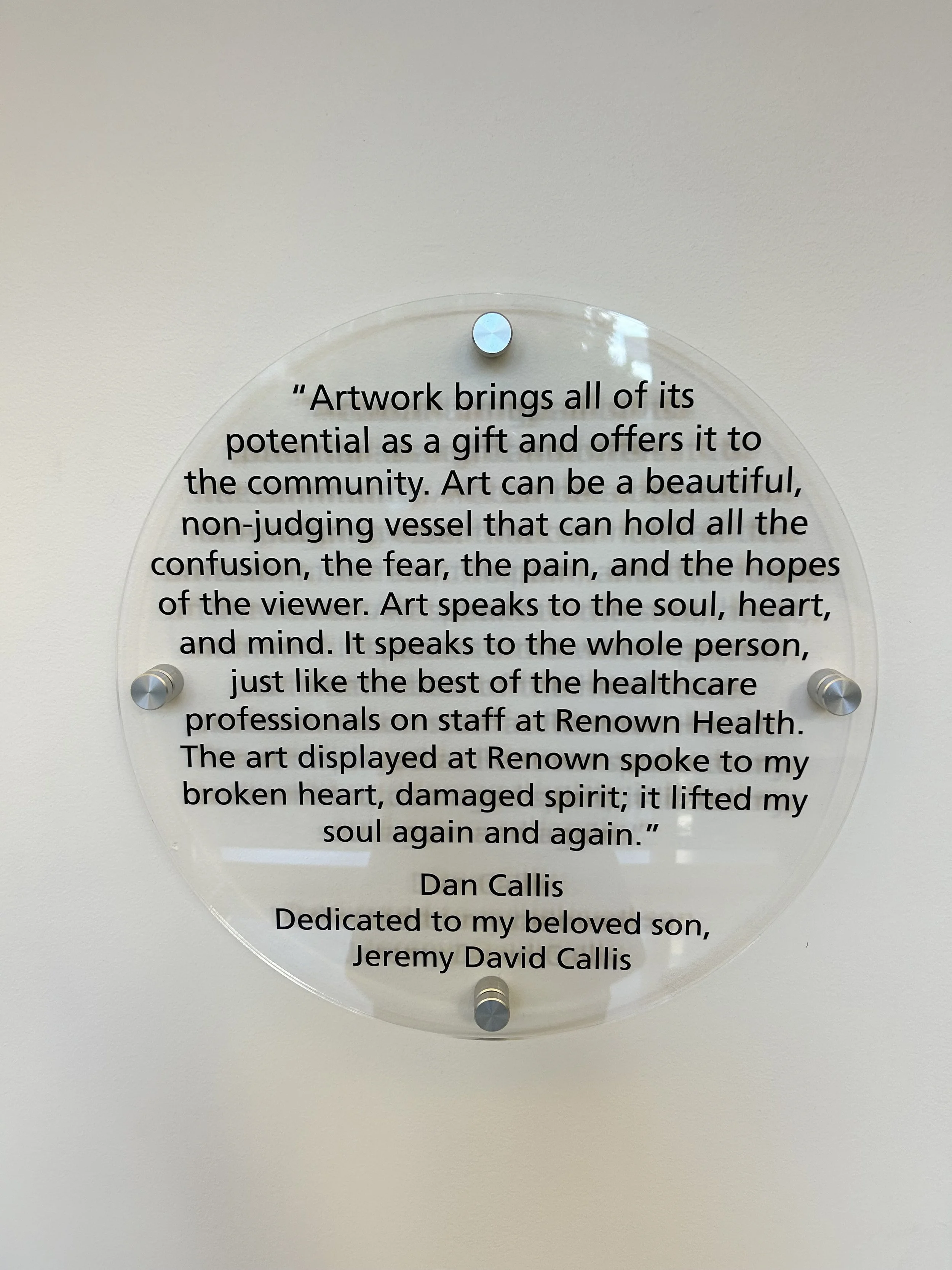 These 6 artworks were inducted into the HEALING THROUGH ART program. This program collects and curates original art into the hospital environment for purposes of the healing process.